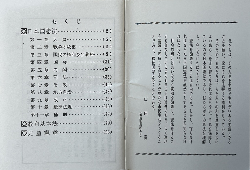 この考えにより、憲法小冊子は市の事業として発行され、市制25周年の記念として、旧市内約12,000戸すべてに配られました。